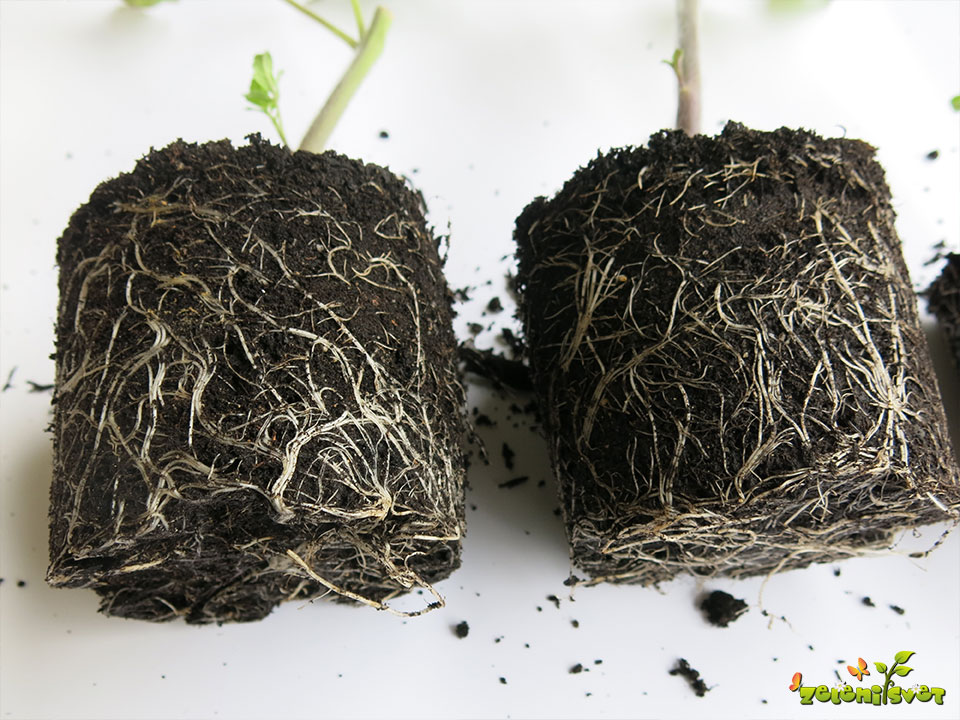 Pri krepki sadiki, ki ima dobro razvit koreninski sistem, se ta prepleta čez celotno koreninsko grudo. Sadika bo dobro nadaljevala rast, pričakujemo tudi kakovosten pridelek.