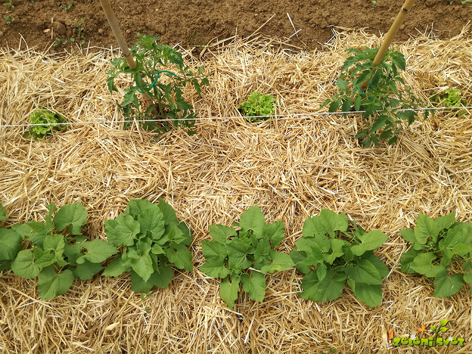 Pri ogledu fotografij vrtov je razvidno da je uporabljena zastirka iz slame.