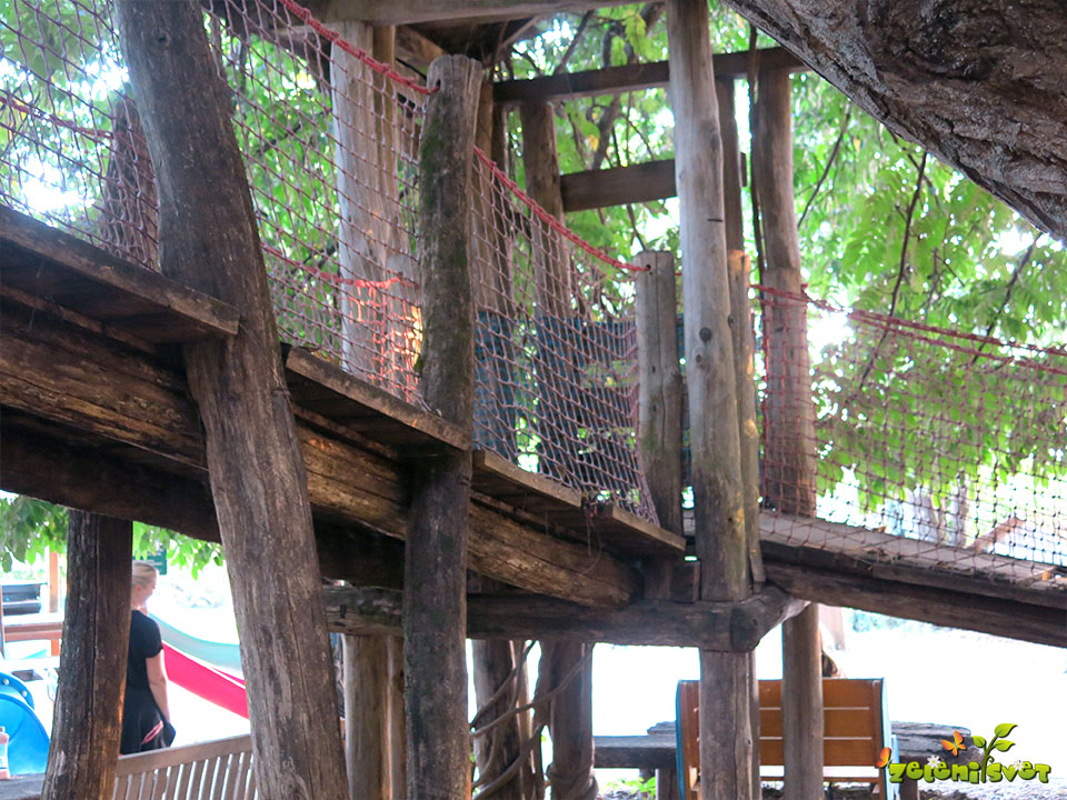 V tem delu otroškega igrišča se otroci radi skrivajo, igrajo in počivajo. V bližini hiš na drevesu je prijeten prostor za otroške dogodke.