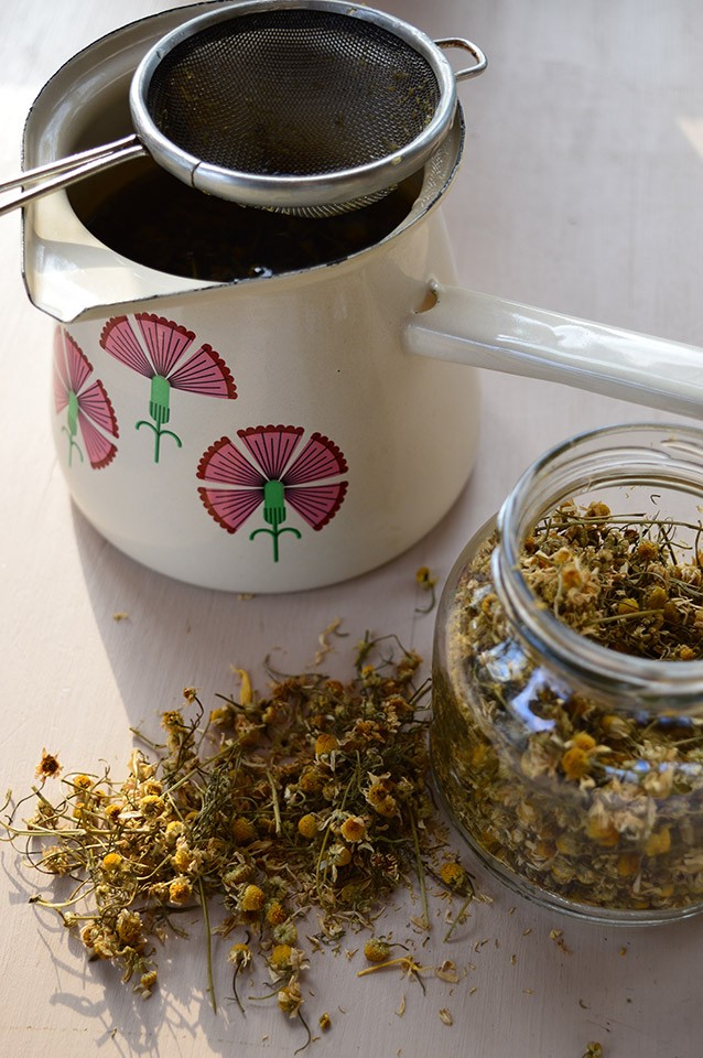 Pest posušenih kamilic prelijemo z 1 l vrele vode. Pustimo stati dokler se ne ohladi, oziroma vsaj 15 minut. Seme namakamo v čaju vsaj 30 min. Čaj naj bo topel. Za namen škropljenja, čaj razredčimo z vodo v razmerju 1: 10.