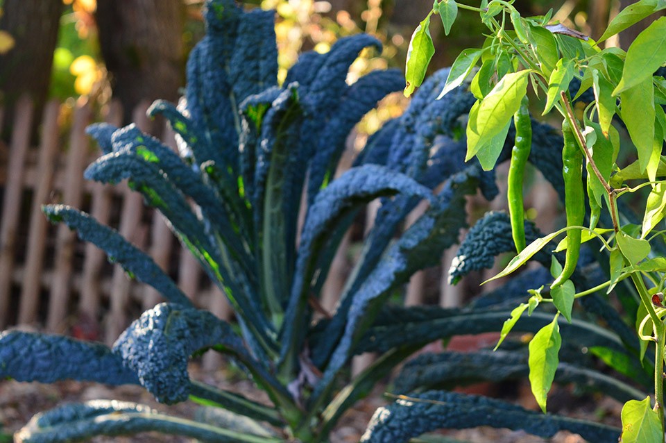 V jeseni je listnati ohrovt že mogočna rastlina. Na sliki ohrovt z ozkimi suličastimi listi temno zelene barve, ki mu pravimo tudi toskanski.