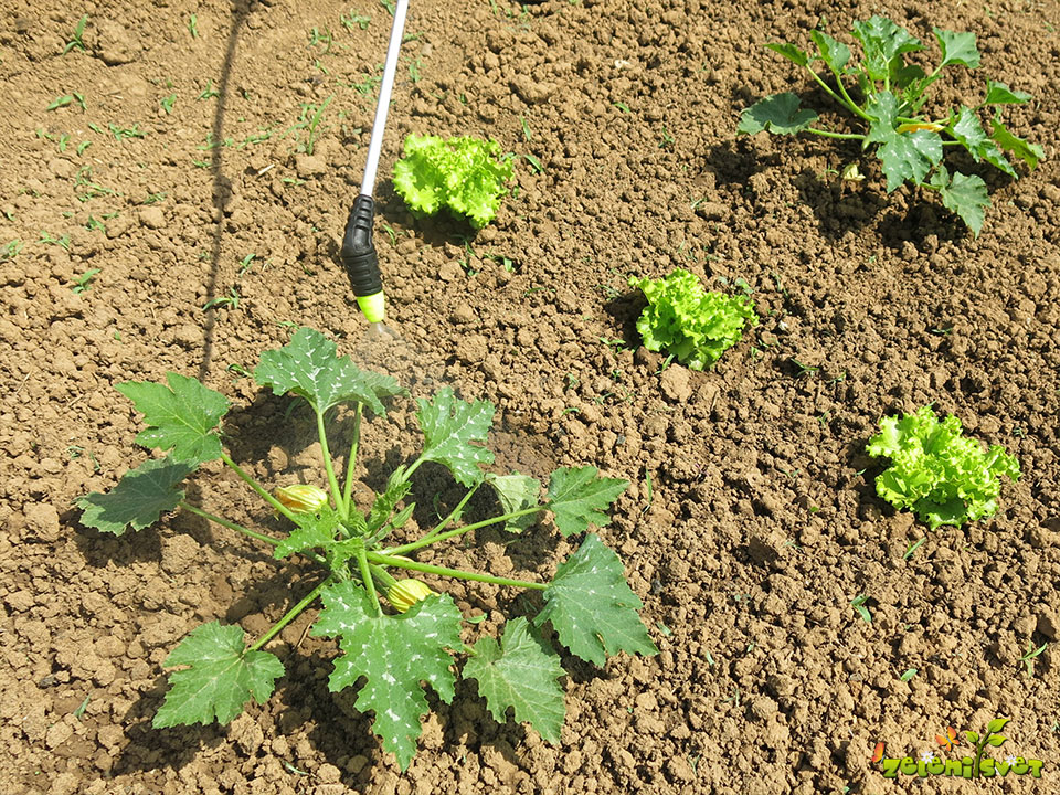 | Škropljenje po listih | Solata, pesa, repa, krompir | 8ml (¾ jedilne žlice) na 4 l vode |
