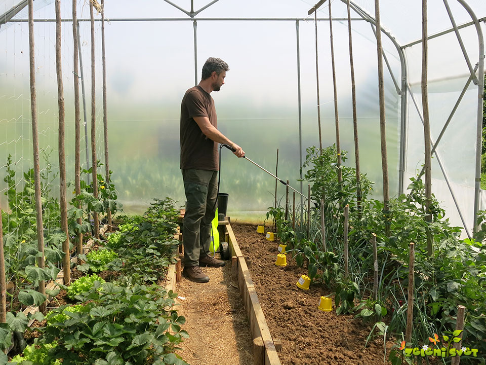 V rastlinjaku je senčenje nujno že pozno pomladi. Mrežo proti toči na rastlinjak napnemo v mesecu aprilu ali maju. Rastline se bodo bolje razraščale in stres zaradi močnega sonca bo manjši.