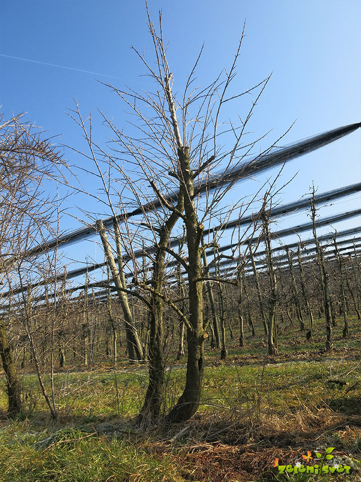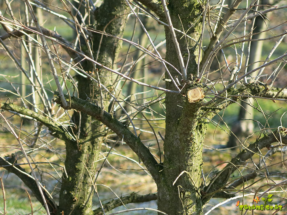 Pod krošnjo iz zemlje izraščajo poganjki. Pri spomladanski rezi jih temeljito izrežemo, da nam v spodnjem delu ne gostijo krošnje.