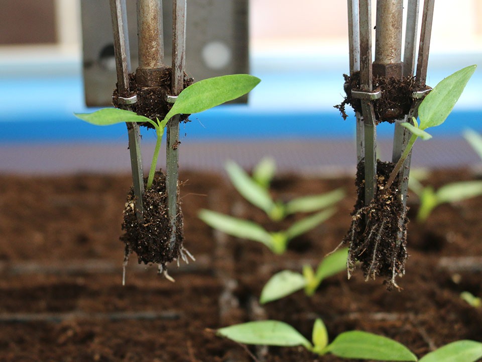 Pikiranje v boljših vrtnarijah v Sloveniji opravljajo roboti, ki majhno sadiko ob razvoju prvega pravega lista primejo ob robu koreninske grude in jo presadijo v lonček. Tako vzpodbudijo razraščanje koreninskega sistema.