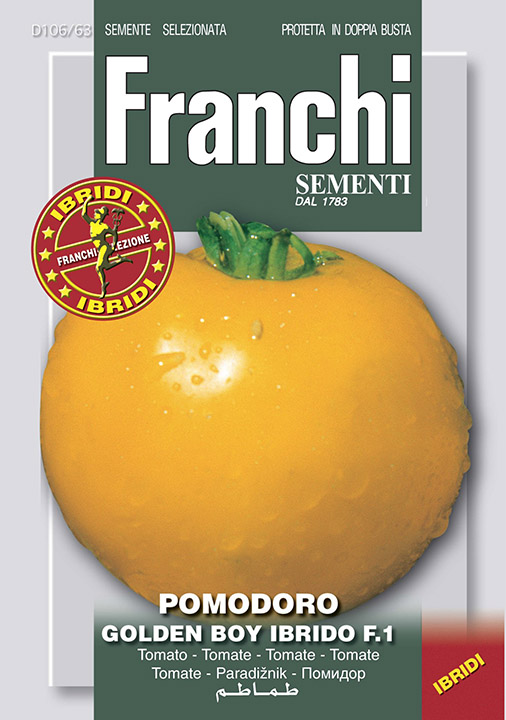 Paradižnik Red Pear Sel. Franchi je srednje pozen. Rastlina je močne rasti in zelo dobro rodi. Veliki, mesnati in okusni plodovi imajo malo semen. Velike rumene plodove pričakujemo na paradižniku Golden Boy F1. Odporen je na verticilium, fusarium in nematode.