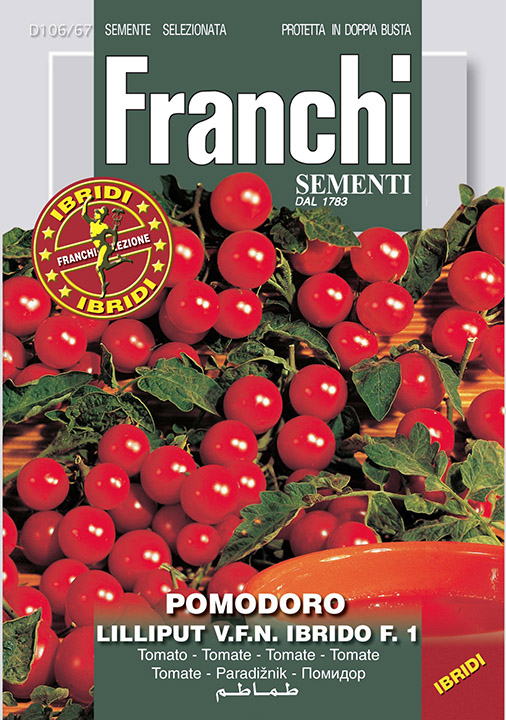 | Liliput v.f.n. hibrid F1 | Zgoden češnjev paradižnik. | Nizka rastlina, ki formira majhne sadeže v obliki češnje. | Lahko se ga goji v rastlinjakih ali koritih kot tudi na prostem. |