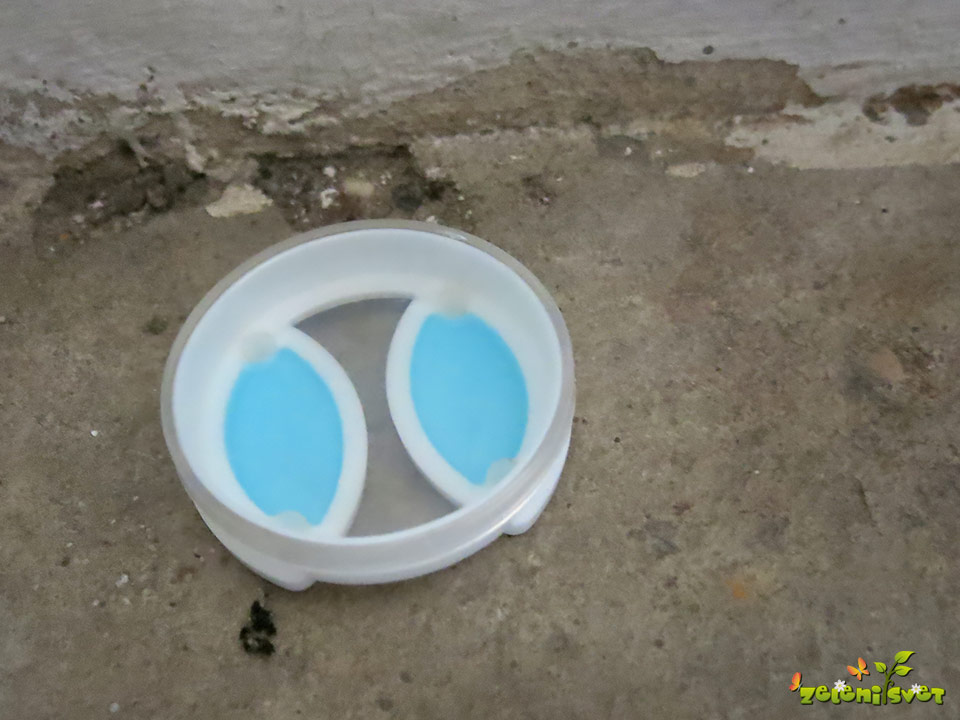 V priloženo plastično posodico za večkratno uporabo nalijemo vabo, ki vsebuje naravno snov, ki deluje proti mravljam. Vabo polnimo na mestu, kjer bo stala.