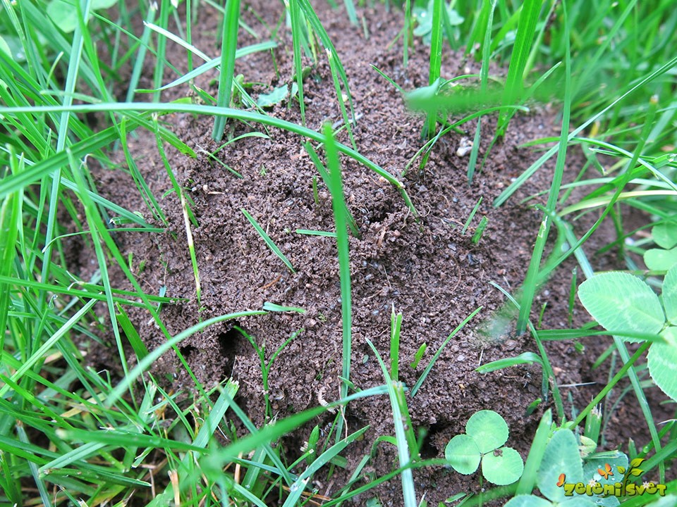 Mravljišče med trato. V tem primeru je najbolje skopati celotno mravljišče. Jamo zasujemo s substratom za trate in dosejemo novo trato.