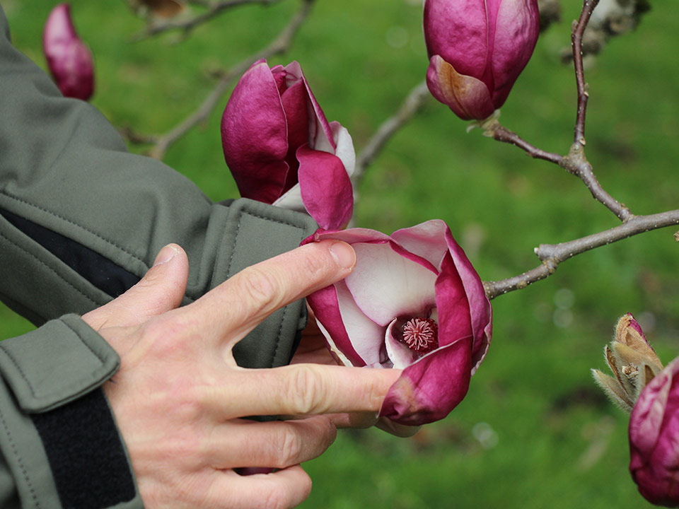 Cvetovi magnolije so še posebej atraktivni v spomladanskih mesecih pred olistanjem. Številni cvetovi na nekoliko starejših grmih in drevesih pritegnejo pozornost, ko se povsem zacvetijo. Cvetovi so različnih barvnih odtenkov, od belih do lilastih, vijoličnih in rumenih.