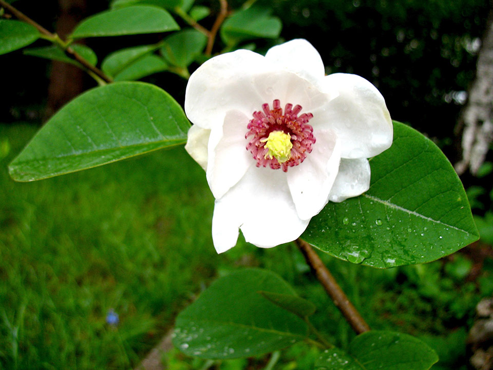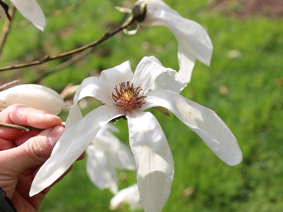| Magnolia sieboldii (sieboldova magnolija) POSEBNOST IN REDKOST | junija do julija | 2 do 4× 2 do 4 | Cvetovi beli z rožnatimi prašniki, privešujoči na daljših pecljih |
