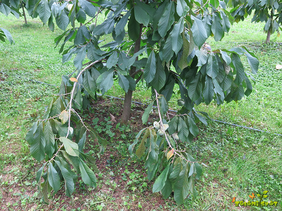 V kolikor želimo asimino vzgajati po pravilu pridelovalnih nasadov jo vzgajamo v treh do štirih etažah rodnih vej.