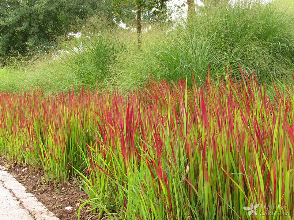 Najbolj rdeča med vsemi travami je rdečelistna imperata sorte ‘Rubra’, ki zraste 40 cm visoko. Barva je bolj izrazita v drugi polovici sezone. Zelo uporabna je za barvno popestritev v koritih, posodah, kjer jo lahko kombiniramo z različnimi rastlinami za jesenske ali poletne zasaditve.