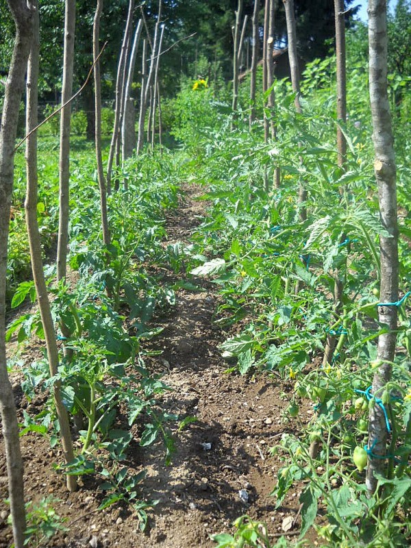 V desni vrsti nasada paradižnika je samo po dveh tednih opaziti očitno razliko v rasti in rodnem nastavku. Tudi levo vrsto smo po fotografiranju dognojili s kompostom, ki smo ga pripravili s pomočjo efektivnih mikroorganizmov.
