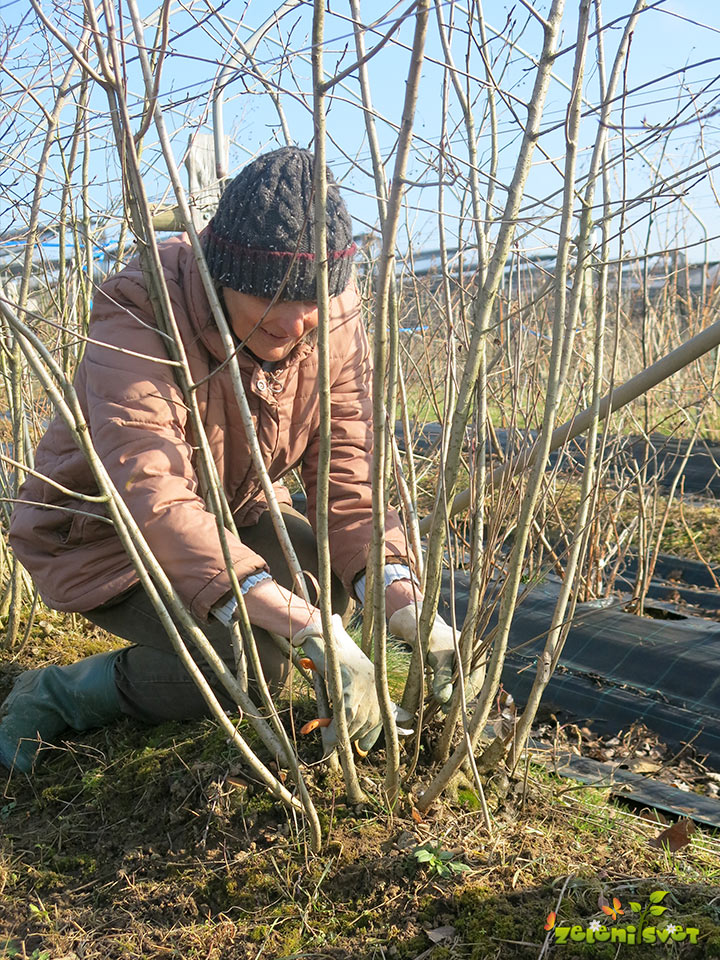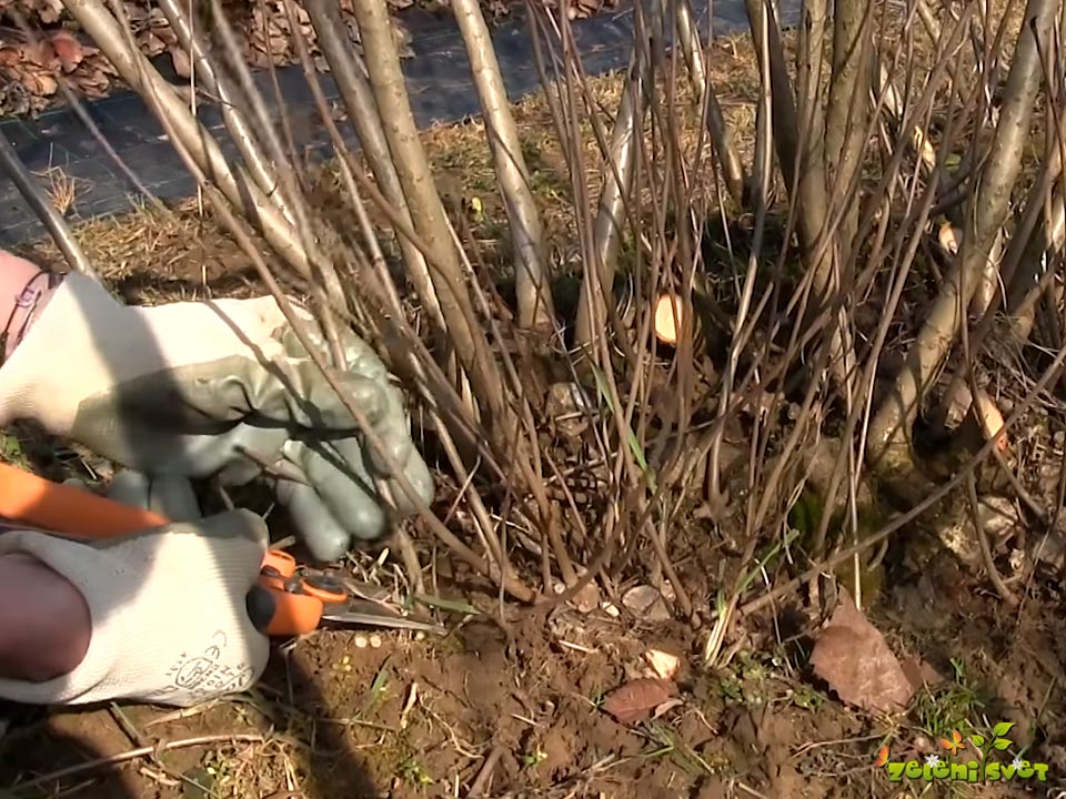 Iz osnove grma požene veliko število mladih poganjkov, katere moramo razredčiti. Mlade poganjke redčimo z rezjo do zemlje.