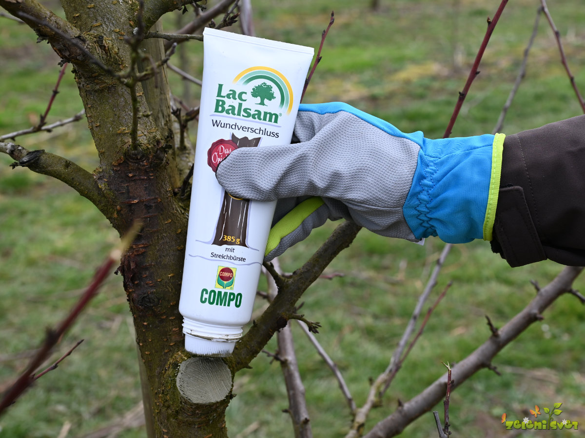 Po rezi večjih vej se uporabi okolju prijazna cepilna smola Compo. Nastalo rano, ki je večja od 2 cm, čim prej v celoti premažite, da pospešite naravno celjenje in zaščito lesa. Na tubi je krtačka, ki vam zelo olajša delo.