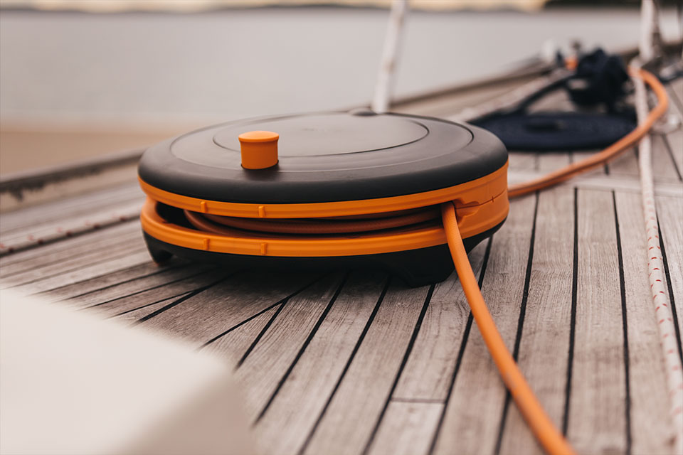 Izberemo lahko tudi vodne kolute z dolžino dovodne cevi 20 in 30 metrov. Prednost kolutov je tudi v tem, da se cevi ne zvijajo in vozljajo. Tako bomo potegnili le toliko cevi, kot jo potrebujemo za zalivanje naše površine. Priročni predalček v kolutu vsebuje vse nastavke za zalivanje.