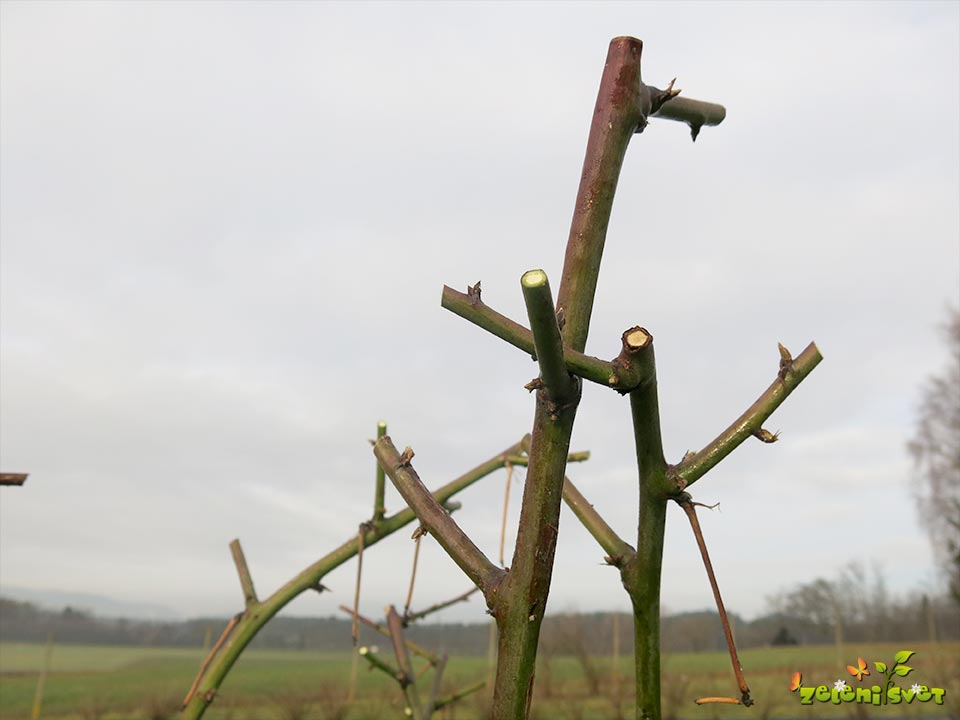 V enem grmu pustimo samo tri do pet poganjkov za rodnost v tekočem letu. Rodni so poganjki prejšnjega leta. V grmu puščamo močne zelene poganjke.