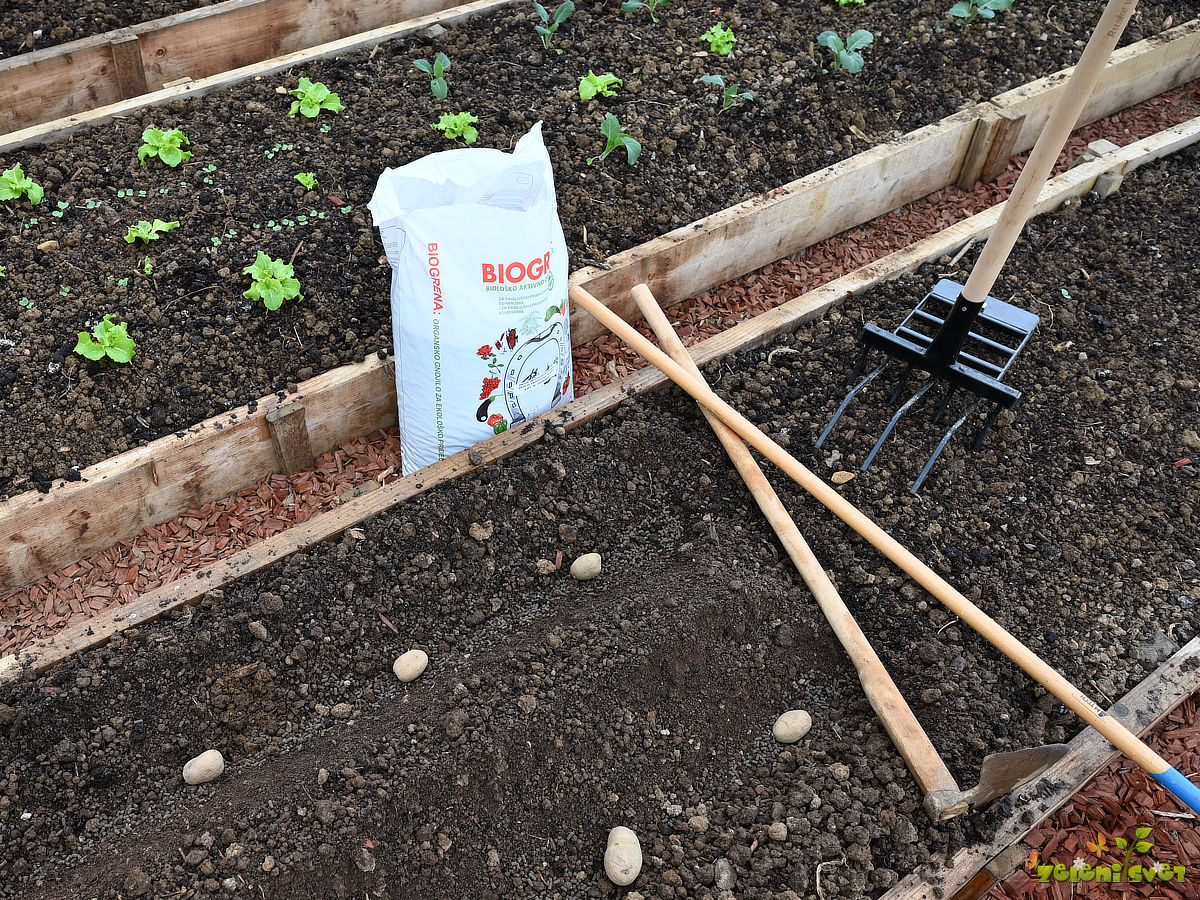 Gredice za krompir pripravite v drugi polovici marca ali začetku aprila. Krompir sadite v globoko pripravljena tla. Ruske vile globoko rahljajo tla in vam omogočajo najlažjo, najhitrejšo vdelavo komposta in organskih gnojil v obliki pelet. Na vrtu je manj slaka, osata in regrata, ker korenin ne sekamo.