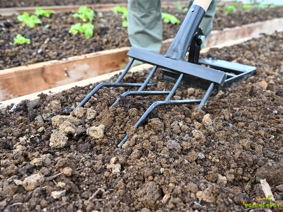 Težka ilovnata tla smo globoko rahljali že v drugi polovici oktobra, spomladi pa postopek ponovimo, saj tako poskrbimo, da je gredica bolj rahla in zračna. Celoten postopek sajenja si oglejte v video posnetku na začetku članka.