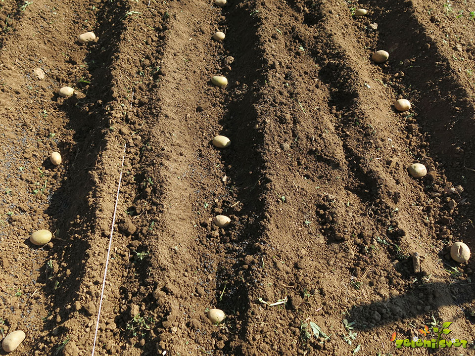 Zgodnje sorte krompirja sadimo na razdajo 25 do 30 cm v vrsti in 55 do 60 cm med dvema vrstama.