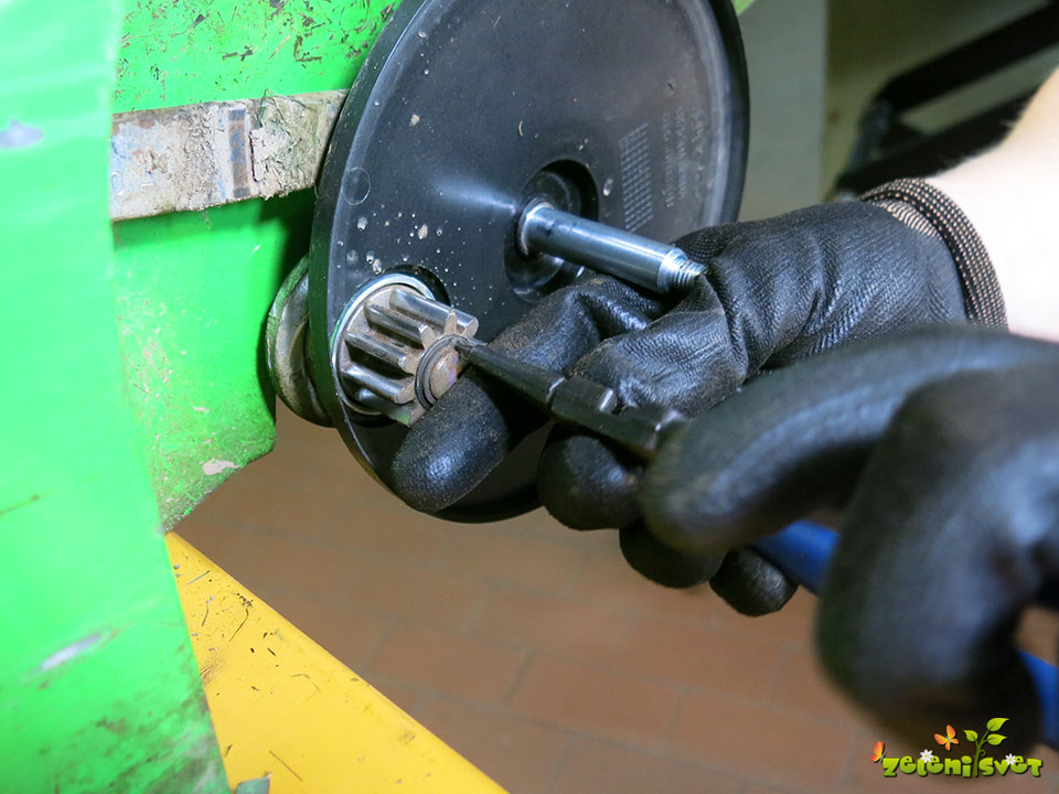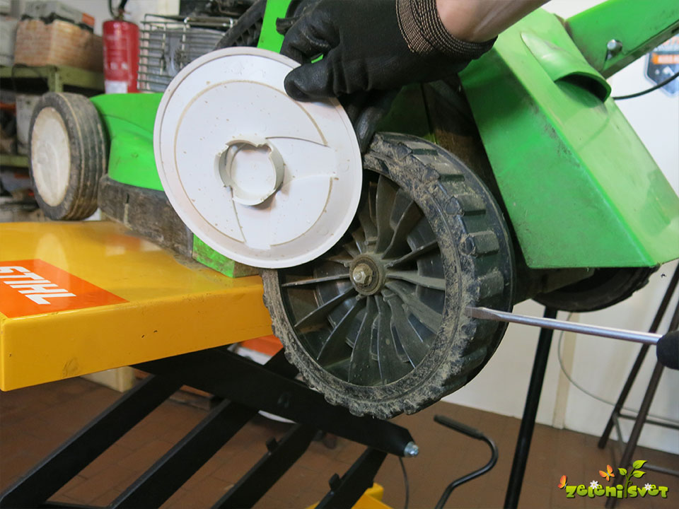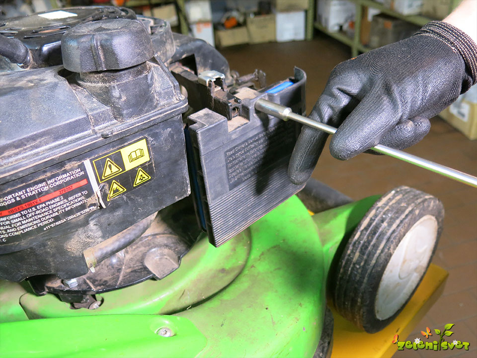 Pri vzdrževanju vrtne kosilnice najprej poskrbimo za varnost in odstranimo kapico vžigalne svečke. To naredimo zato, da preprečimo morebiten zagon motorja pri odstranitvi rezila. Tako delo poteka varno in brez zapletov.