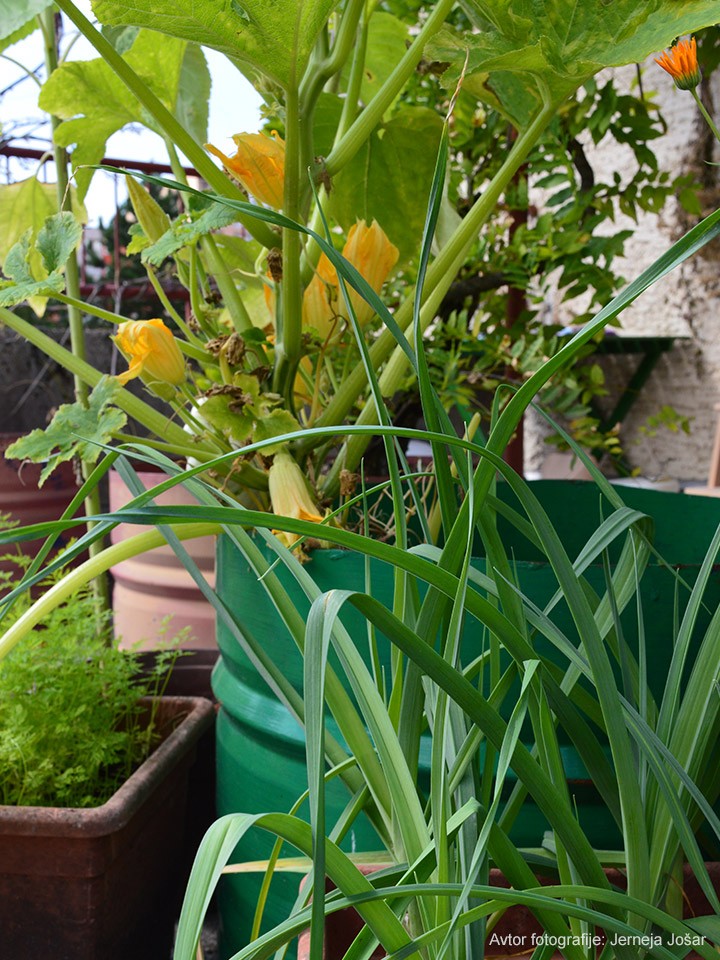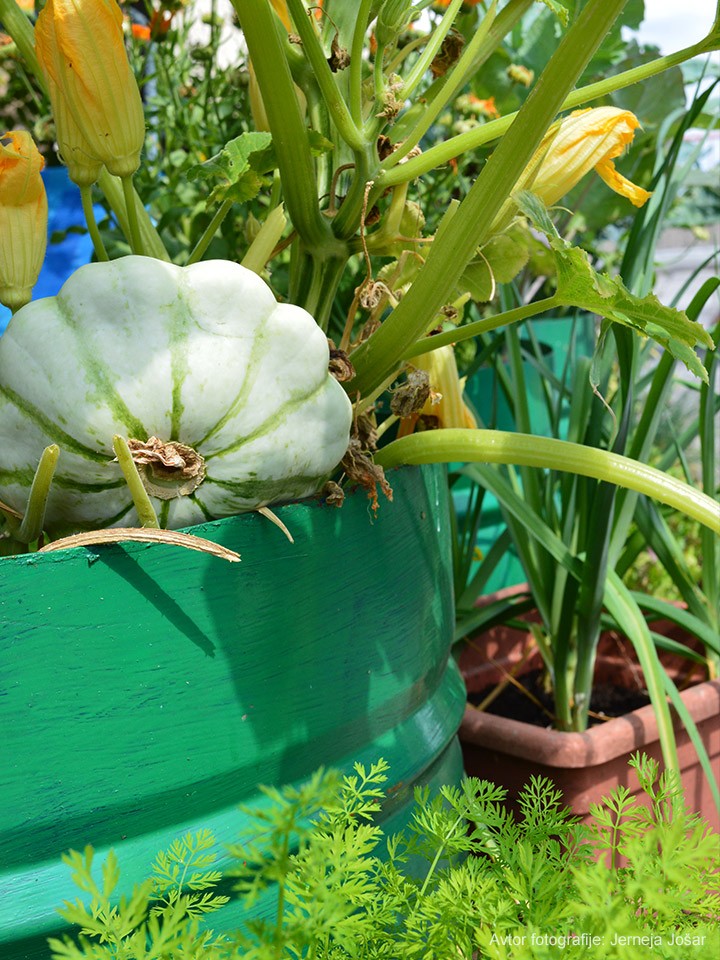 Pridelek pobiramo oktobra in novembra. Dokler zimske temperature niso prenizke, jo pustimo v loncu in pobiramo po potrebi.
