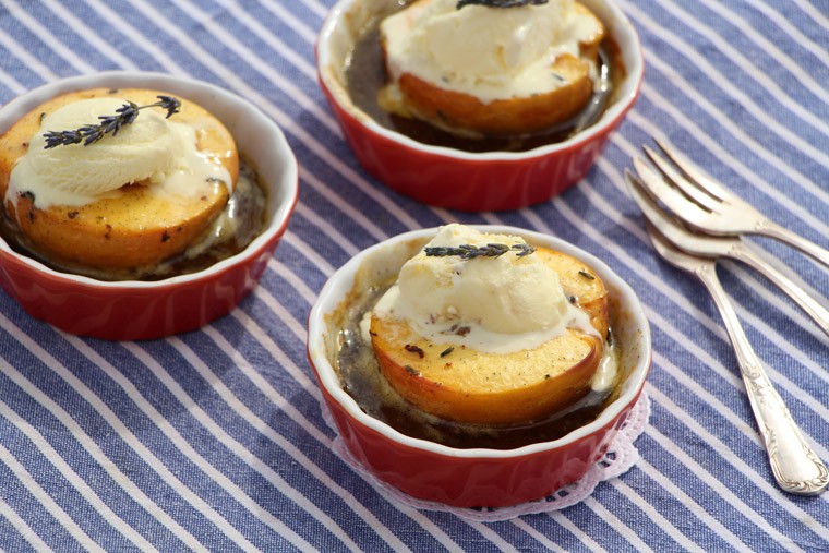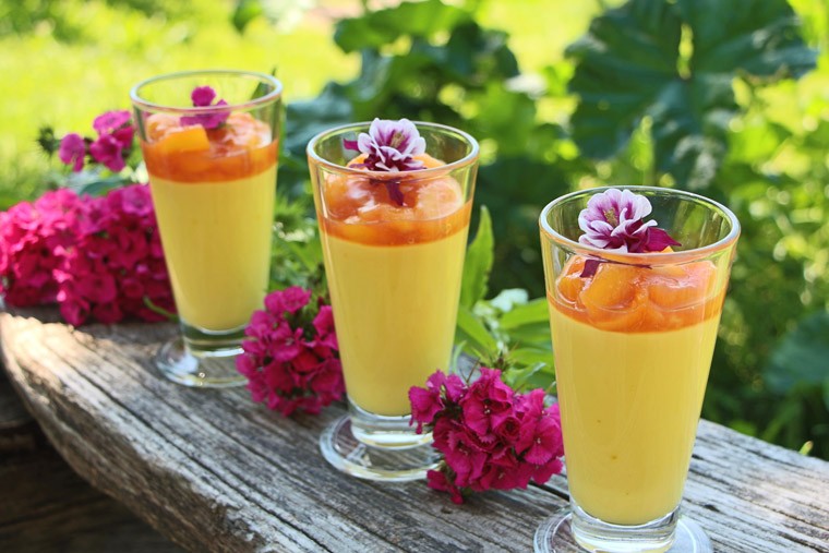Domači žafranov puding s sirupom iz nektarin