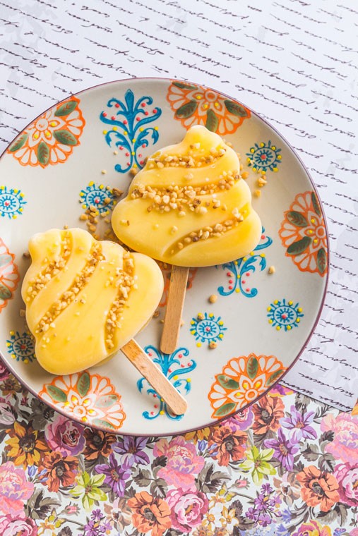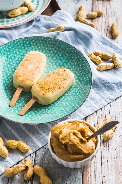 Uporabimo silikonske modelčke za izdelavo sladoleda na palčki, ki jih potresemo z na drobno sesekljanimi slanimi in praženimi arašidi, nato pa napolnimo s pripravljeno maso ter zamrznemo v zamrzovalniku za 4 ure.