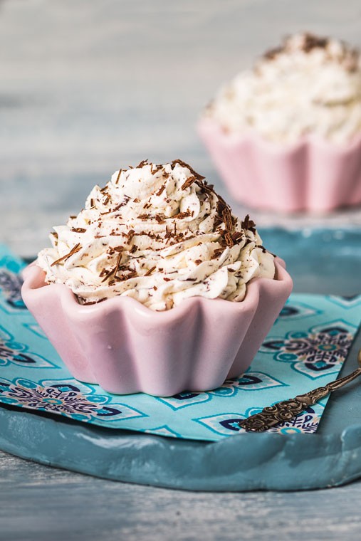 Sladko smetano vlijemo v posodo, dodamo sladkor in vaniljev sladkor ter stepemo z električnim ročnim mešalnikom. Čvrsto stepeni sladki smetani na rahlo umešamo nastrgano temno čokolado in maso nabrizgamo v lončke ter jih postavimo v zamrzovalnik za najmanj 4 ure. Sladoled lahko potresemo z nastrgano čokolado.