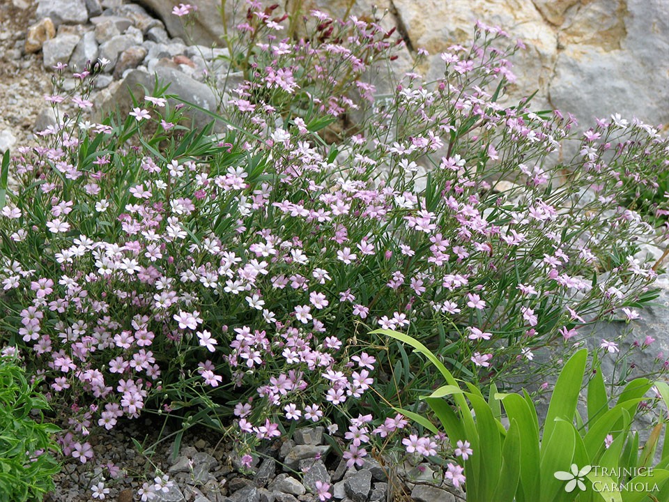 Plazeča sadrenka je bližnja sorodnica šlajerja ali pajčolanke, ki je bila dolgo nepogrešljiv sestavni del skoraj vseh šopkov. Plazeča ostane nizka, ima sivkaste liste in cveti v beli ali rožnati barvi. Odlična je za peščene vrtove, za robove gred z vrtnicami in za skalnjake. Cveti poleti, po potrebi ji lahko le nekoliko prikrajšamo poganjke.