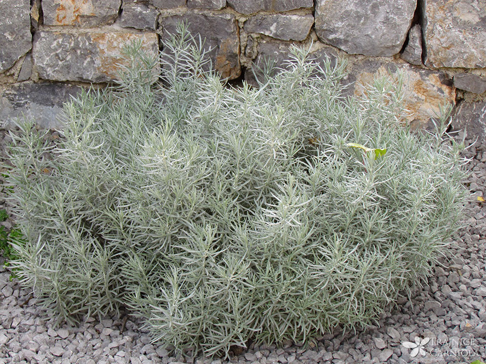 Laški smilj je še eden od sredozemskih predstavnikov z močno aromo in izrazito svetlo sivimi listi. Nad poganjki se poleti razvijejo drobna rumena socvetja. Kot zgornje, tudi tega vsako leto nekoliko prikrajšamo.