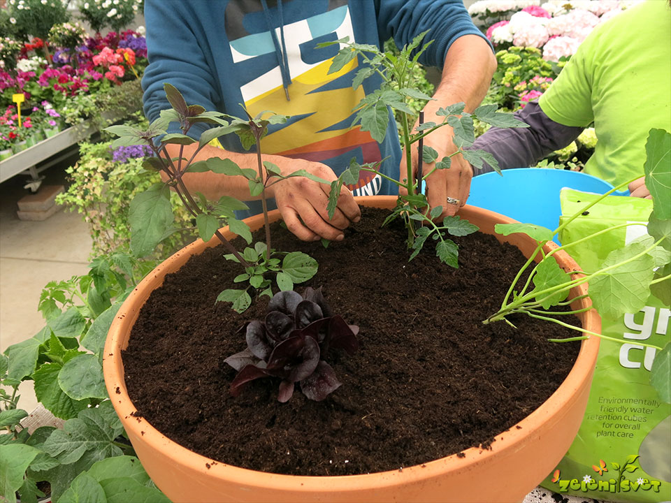 Pred sajenjem poskrbimo za postavitev dovolj velikih loncev. Veliko idej za izkoristek prostora lahko najdemo na različnih vrtnarskih sejmih. Oblikovalci skupaj z vrtnarji predstavljajo različne zasaditvene načine.