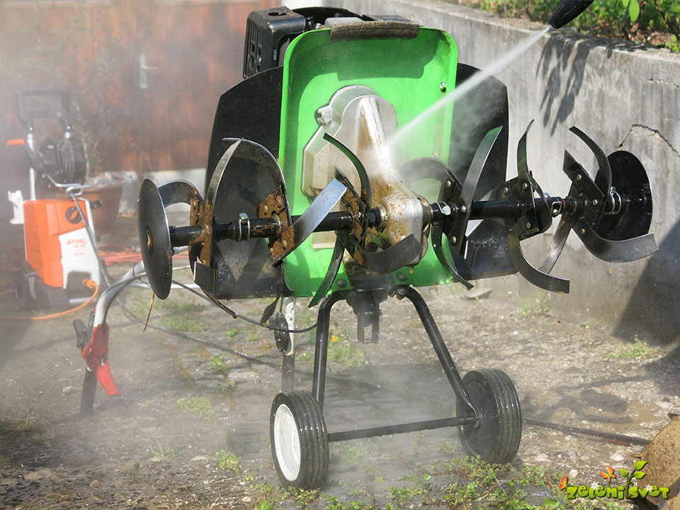 Z visoko tlačnim čistilnikom brez težav odstranite umazanijo na fasadi, tlakovcih, stopnicah. Z njim je tudi čiščenje vrtnega pohištva enostavno opravilo. Zelo priročen je tudi za pranje motornega kultivatorja po delu v vrtu.