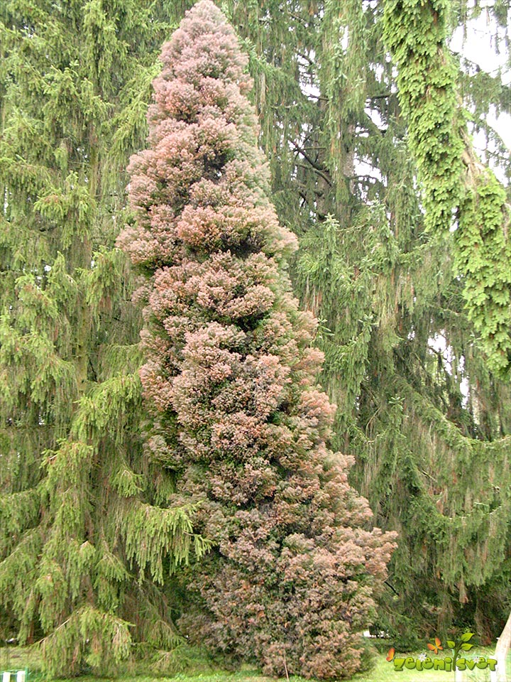 Med iglavci se z zlato rumenim prelivom obarva pritlikava sorta ruševja ´Wintergold´. Zelo rade pa v mrazu porjavijo določene paciprese, kleki ali tuje in kriptomerija. Ljudje se včasih prestrašijo, ko prvič vidijo ta pojav na svojih iglavcih, vendar je strah odveč. Ko se otopli, se ti iglavci zopet obarvajo v svoje značilne barve.