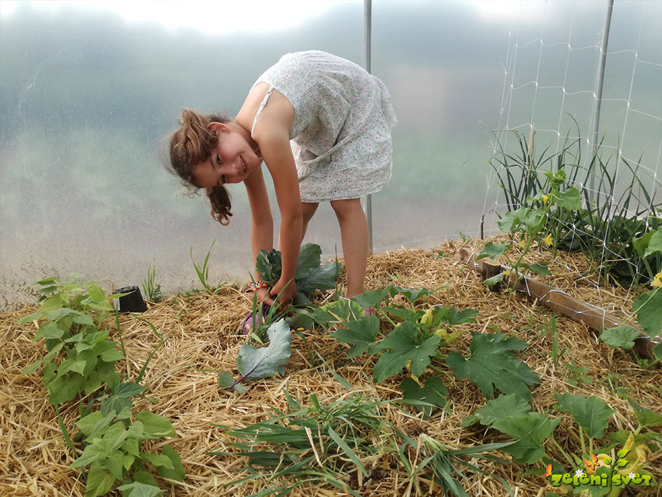 V rastlinjaku že pobiramo prve plodove. Razmere v rastlinjaku nam omogočajo, da smo dober mesec dni pred vrtom. V aprilu poskrbimo za sajenje bučk, setev nizkega fižola, sadimo paradižnik, kumare, jajčevce, papriko.