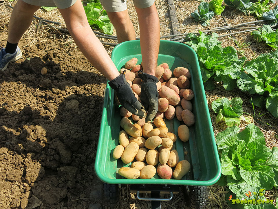 Mali vrtni voziček in pobiranje sprotnega pridelka