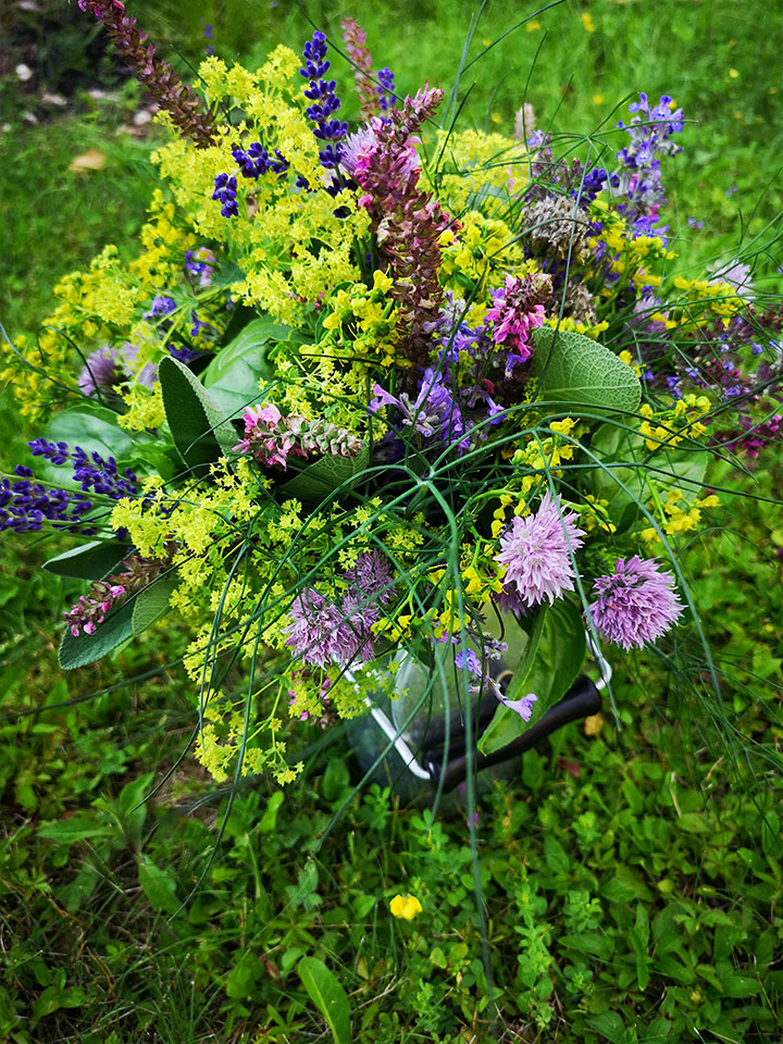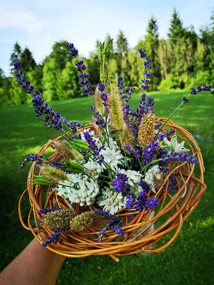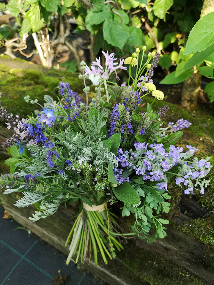 Razporeditev zelišč za izdelavo zeliščnega šopka
