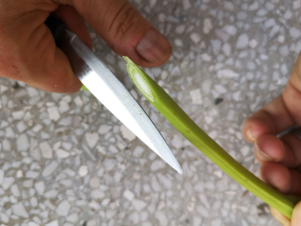 Peclje je potrebno poševno spodrezati z ostrim nožem, saj škarje, ki slabo režejo, stisnejo vodovodne cevi in zelišča ne morejo dobiti dovolj vode.